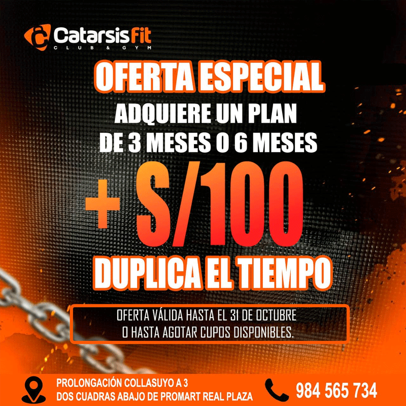 Duplica tu membresia por tan solo S/100Acceso a todas las salas de entrenamientoClases Grupales y evaluaciones corporales.